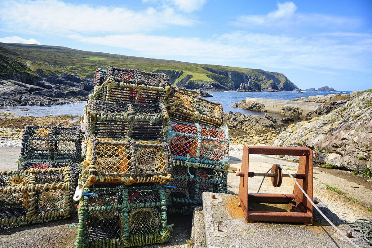 Im Zentrum der Bucht von An Port steht, wie es der Name bereits vermuten lässt, ein Pier, welches erstaunlich gut in Schuss ist und noch aktiv genutzt wird. Ist man auf der Suche nach außergewöhnlichen Fotomotiven, kann man in zwei verschiedene Richtungen gehen. Bei der Entscheidung sollte der Sonnenstand berücksichtigt werden. Kraxelt man rechts den Hügel hinauf, so fotografiert man von dort in Richtung Westen und darf sich an bizarren Felsnadeln vor der Küste und einem schönen Blick aufs Pier erfreuen. In die andere Richtung führt ein Wanderweg, erst entlang dramatischer Klippen und weiter durch die Hügel nach Glencolumbkille. Hier fotografiert man in Richtung Nord / Nordost und hat ein Paradebeispiel der schroffen Küste Donegals vor der Linse.