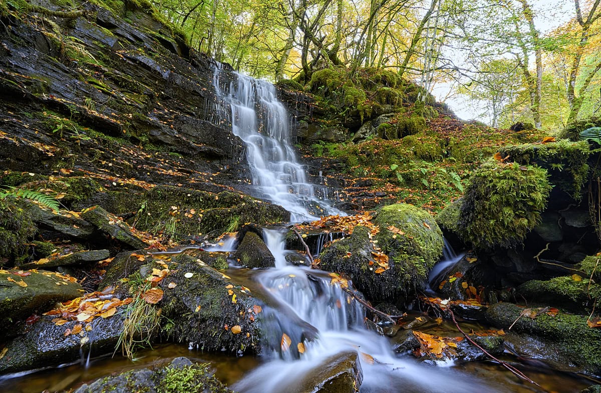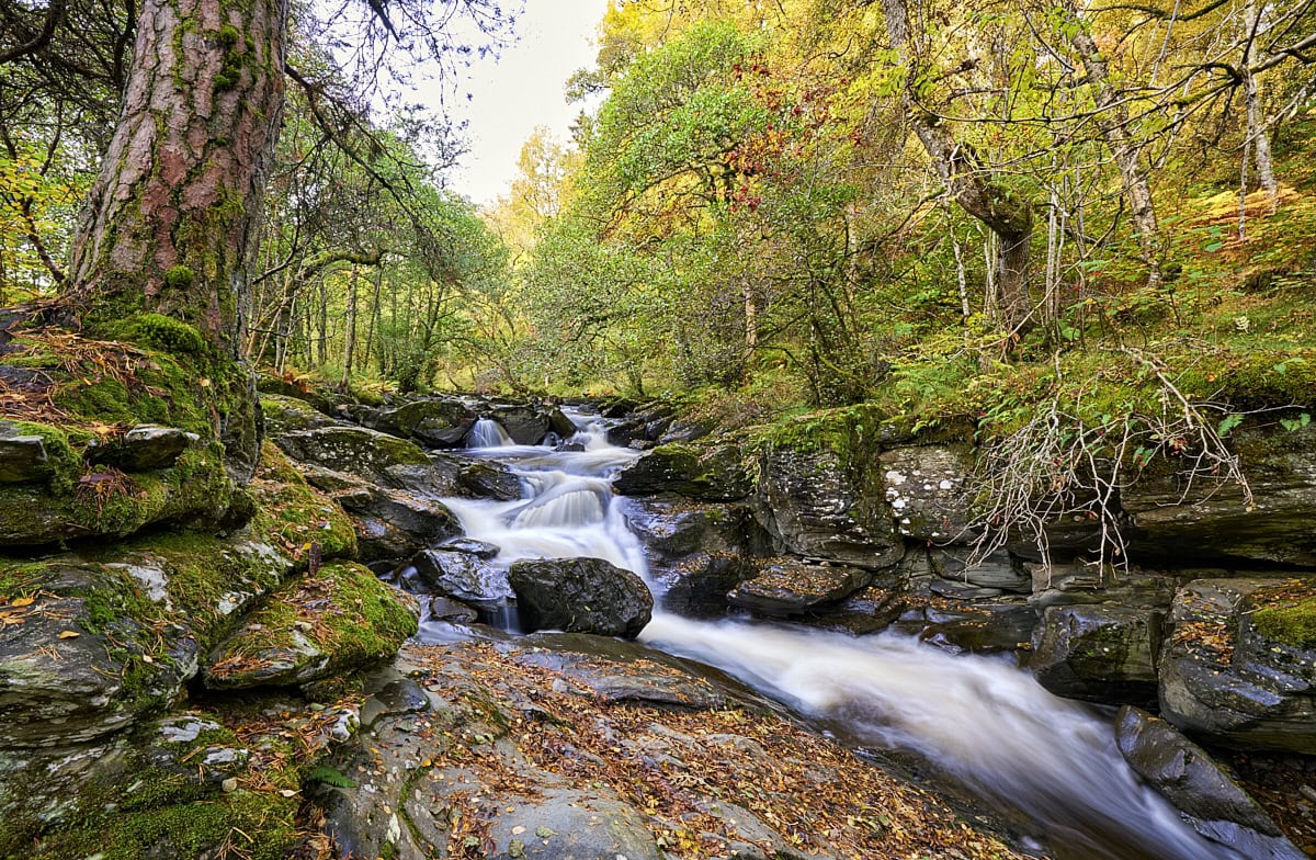 Mit dem Wasserfall war es dann so eine Sache. Den höchsten Wasserfall in der Schlucht kann man nur aus einiger Entfernung betrachten und fotografieren. Das war eher nicht das erhoffte Motiv. Dafür gibt es im unteren Teil der Schlucht Fotomotive in Hülle und Fülle. Hier bahnt sich das Wasser seinen Weg entlang der Hänge und es reiht sich Wasserfall an Wasserfall. Ein echtes Eldorado für Landschaftsfotografen. Burns hatte mit seiner lyrischen Hommage an die Schönheit der Schlucht absolut recht: Die Birks of Aberfeldy sind eine Fotolocation wie ein Gedicht.