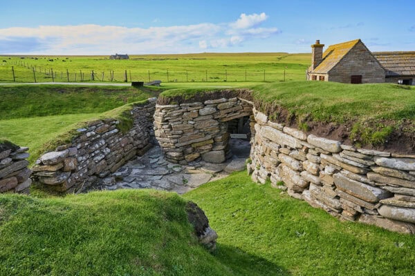 Neolithic village of Skara Brae at the of the UNESCO Heart Of Neolithic Orkney World Heritage Site, Orkney, Scotland