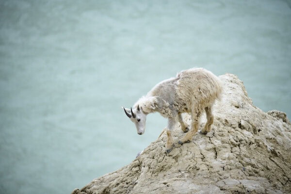 Mountain Goats at Goats & Glacier Lookout at the Icefields Parkway in Jasper National Park, Rocky Mountains, Alberta, Canada