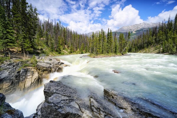 Totem Poles near Sunwapta Falls at the Icefields Parkway in Jasper National Park, Rocky Mountains, Alberta, Canada